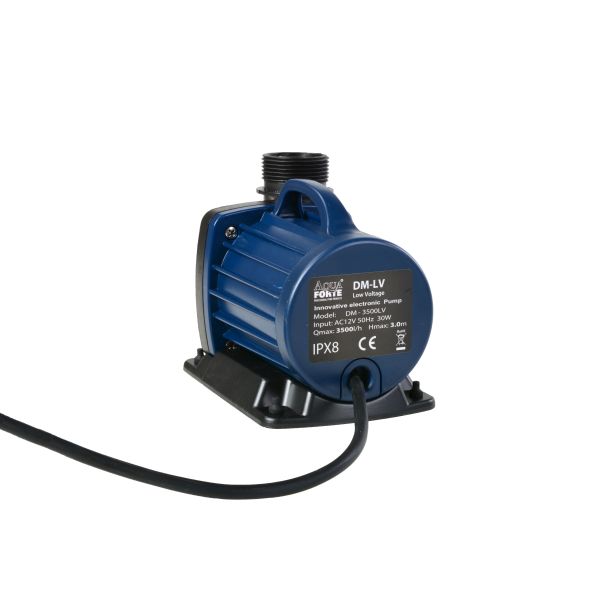 Een vernieuwde versie van de erg populaire DM-serie van AquaForte. Deze AquaForte DM-3500 LV vijverpomp werkt op een lager voltage. Perfect voor zwemvijvers of andere toepassingen waarin een laag voltage pomp gewenst is. Door dit lagere voltage krijg je niet te maken met gevaarlijke elektrische schokken in het water. Dit komt vooral van pas wanneer je de vijver als zwemvijver gebruikt. De AquaForte DM-3500 LV vijverpomp heeft een maximale doorstroming van 3.500 liter per uur en is geschikt voor zowel in de vijver als buiten de vijver onder het waterniveau.