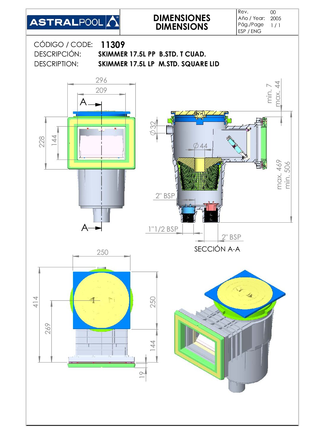 Deze skimmer is geschikt voor inbouw in betonnen zwembaden en foliezwembaden. Dankzij het ruime opvangvolume en de bijgeleverde mand, wordt vuil efficiënt uit het water gefilterd. Het deksel is afneembaar voor eenvoudig onderhoud.